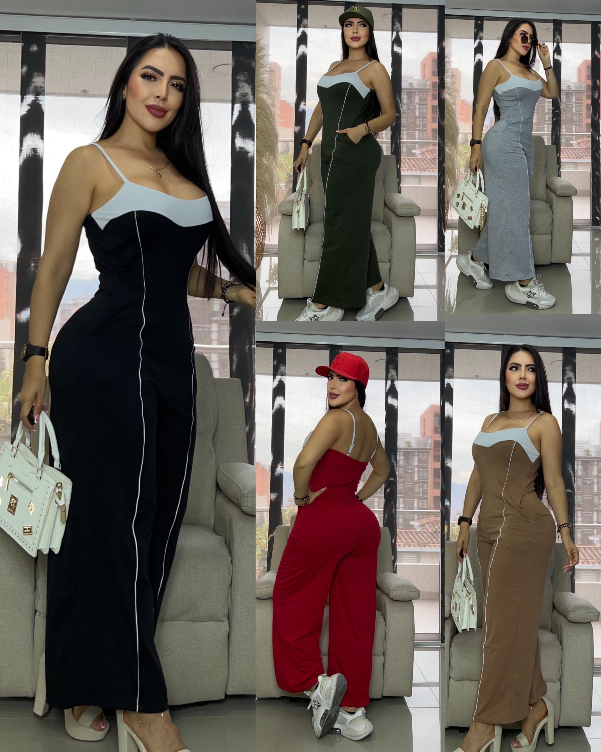 Este enterizo tipo peto ha sido elaborado en algodón licrado, una tela suave, fresca y con excelente elasticidad que se ajusta perfectamente a tu cuerpo, brindándote libertad de movimiento y un fit espectacular. Su diseño moderno y ligero es ideal para quienes buscan estilo sin complicaciones. 🌬️💃