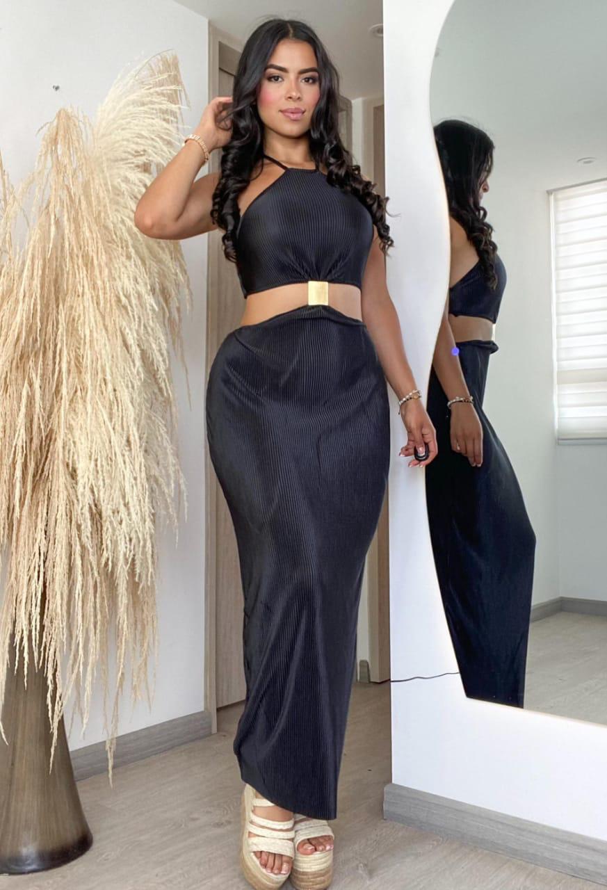 VESTIDO LARGO “EGIPCIA” — ELEGANCIA DININA EN SATÍN ACANALADO.